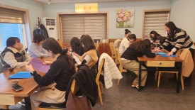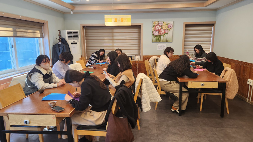 위 사진은 상담 및 치료사분들, 행정실장님들과 롤링 페이퍼를 통해서 서로에 대해 궁금한 부분에 대해 질문도 하고 솔직하게 답변도 해주시는 시간들을 담은 사진인데요. 서로가 더욱 깊이 알아가게 되는 소중한 시간이 되었던 듯 합니다.